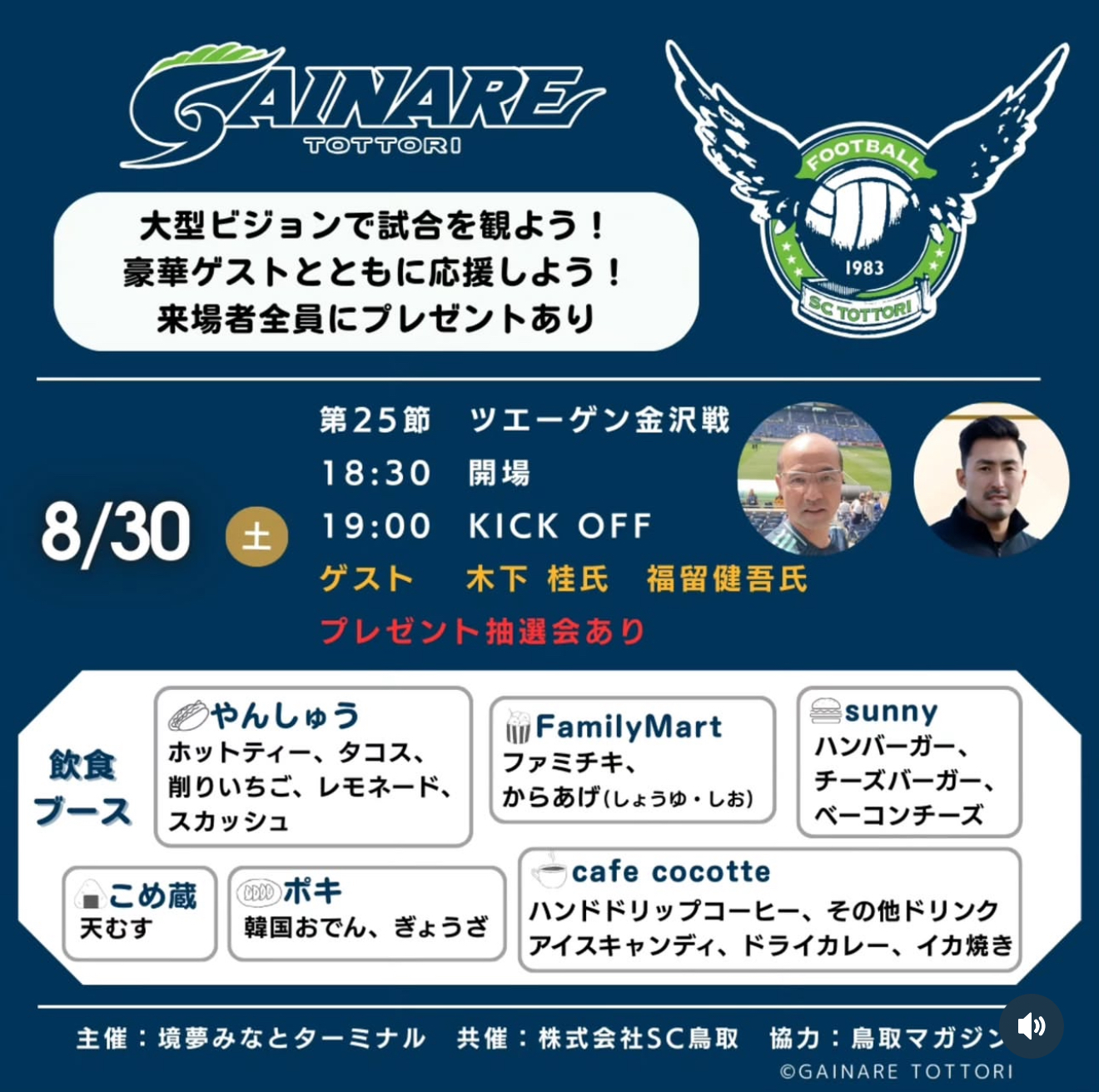 8/30(土) 第25節 ツエーゲン金沢戦 19:00キックオフ (入場18:00~)