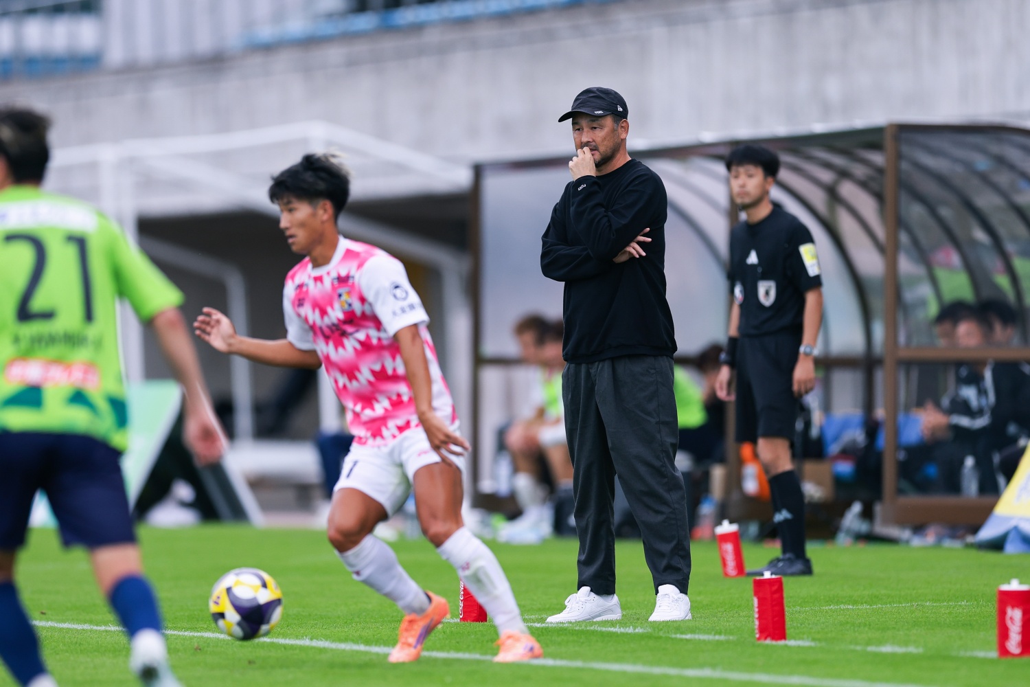 今日もたくさんのファン・サポーターの皆さんに応援いただき、ありがとうございました。試合は、良い入り方ができたと思いますし、シュートチャンスを作り、得点もできました。流れとしてはとても良かったです。ただ、失点が残念でした。長いボールが入ってきて、相手の2トップの関係性であっさり失点してしまったことは、もったいなかった。ヘディングで競り勝つこともそうですが、誰がカバーに行くかというところが少し曖昧になってしまっていました。押し込まれたシーンを上手く守れていただけに、少し軽さのある失点だと感じました。前節の鹿児島戦と同様に私たちのディフェンスラインが引き出されたことも、その背後に流されて相手の2トップに起点を作られる原因となりました。それが2失点目につながっています。試合の準備段階で、その辺りの判断やポジショニングを明確にしてあげた方が選手たちはやりやすかったかもしれないと感じました。ハーフタイムには、ボールの配球、ロングボールが入ってきたときのチャレンジ&カバーとセカンドボールに対する意識付けをしましたが、立ち上がりにそのチャレンジ&カバーで失点してしまいました。3人目の判断のミスもあり、痛い3失点目になりました。そのあとも相手ゴール前に入っていくことができましたが、やはり相手の特徴ある組織的なディフェンスラインは堅かったです。相手をなんとか引き出し、サイドから侵入していくところまではできましたが、最後まで崩し切ることができませんでした。最後にしっかり通す、決めるということは、まだ課題です。