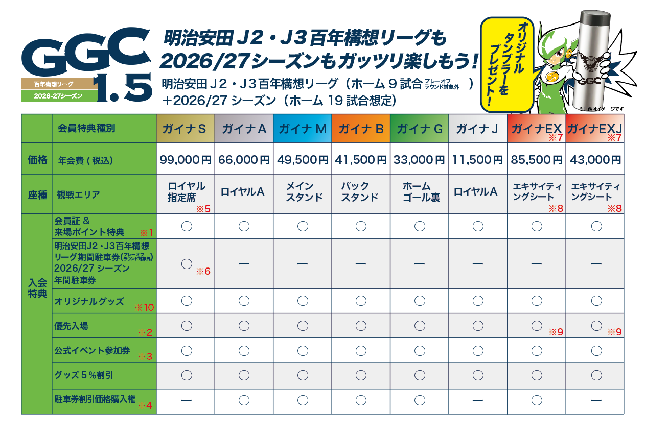 オフィシャルファンクラブ「GGC2026/27」概要決定のお知らせ(11/11更新)