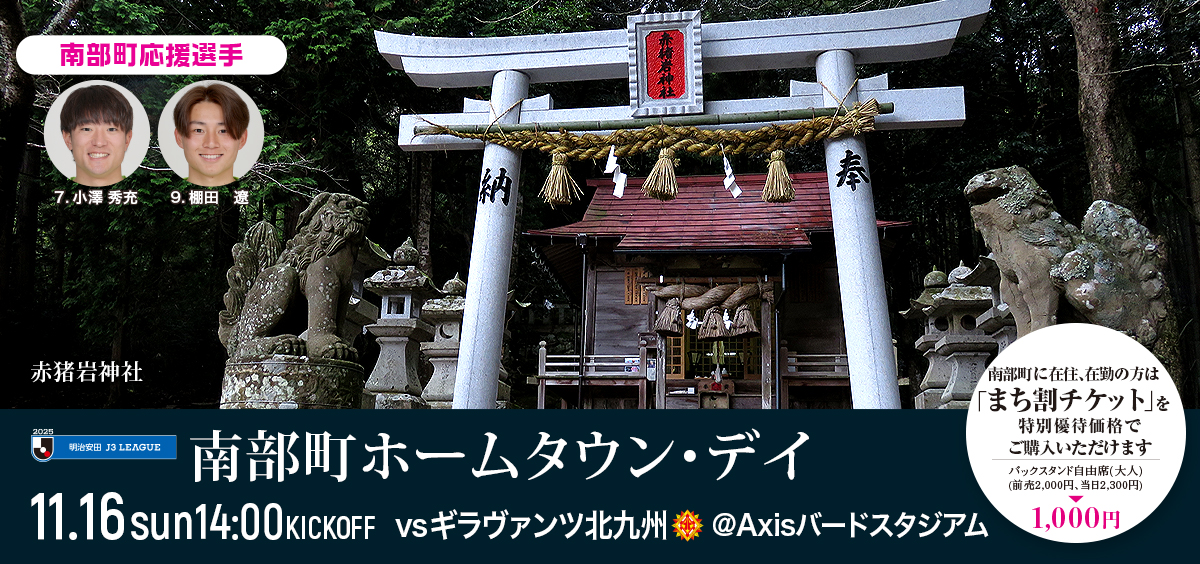 11/16(日)ギラヴァンツ北九州戦は、南部町ホームタウン・デイです。