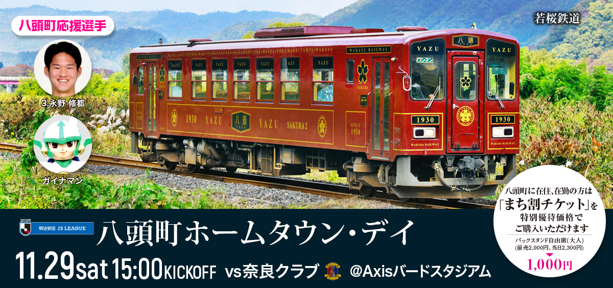 11/29(土)奈良クラブ戦は、八頭町ホームタウン・デイです。