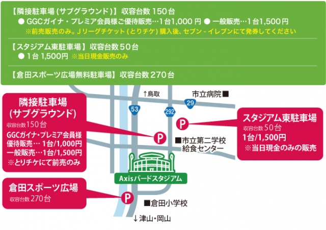 ・「スタジアム隣接駐車場」は「とりチケ」にてご購入ください